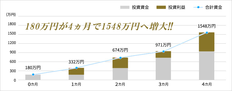 - 180万円が4ヶ月で1548万円へ増大
