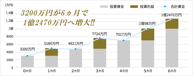 - 3200万円が6ヶ月で1億2470万円へ増大